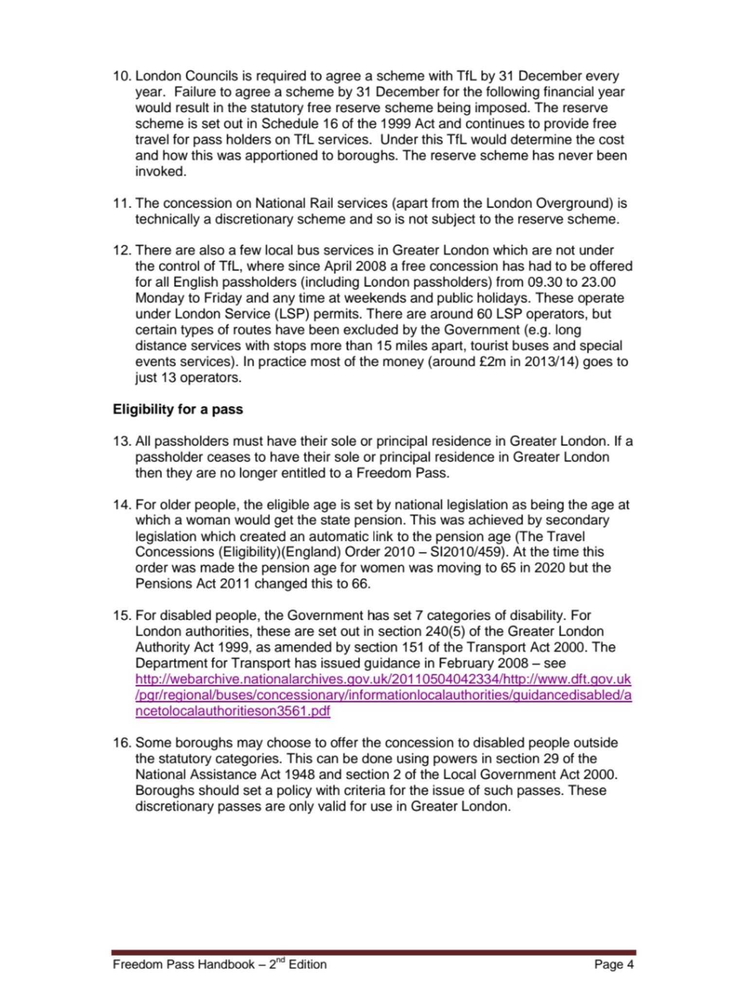 Freedom pass is a concessionary travel scheme, which began in 1973, to provide free travel to residents of greater london, england, who are aged 66 and over (the age of eligibility increased progressively from 60 in 2010 to 66 in 2020) or who have a disability.